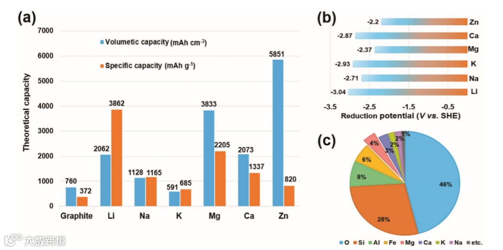 1、镁的理论容量高达3833mAh-cm-3(锂的理论容量为2046mAh-cm-3),还原电位低(-2.37 vs SHE)。