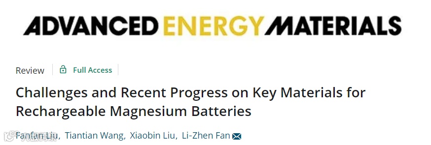近日,北京科技大学的范丽珍教授等人就可充电镁离子电池中的挑战在国际知名期刊Advanced Energy Materials上发表题为“Challenges and Recent Progress on Key Materials for Rechargeable Magnesium Batteries”的综述。文章第一作者是Fanfan Liu。