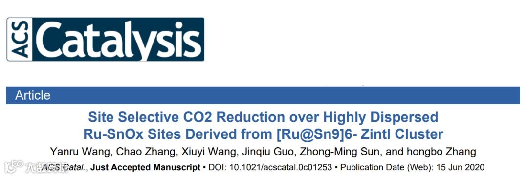 (1)首次将[Ru@Sn9]6- Zintl 团簇负载在CeO2载体上,得到高度分散的过渡金属Ru催化剂,并将其应用于CO2选择加氢机理研究。