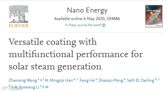 • 开发了一种新型太阳能海水淡化用光热涂层。
