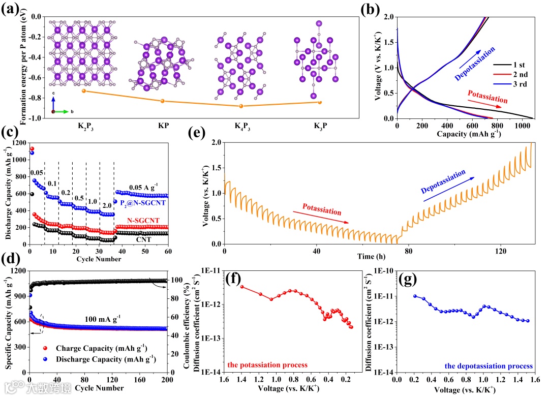 图6.P2@N-SGCNT复合材料在钾离子电池中的电化学性能