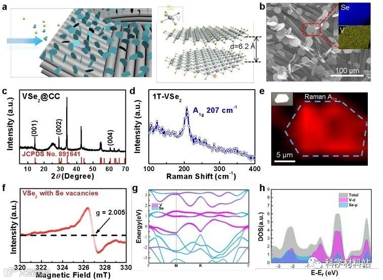 本文中,作者通过化学气相沉积(CVD)技术,在碳布衬底上直接生长获得VSe2-垂直石墨烯(VG)异质结,作为锂硫电池多功能硫宿主材料,改善锂硫电池的倍率和循环稳定性(图1)。