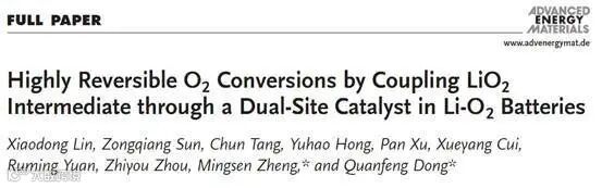 通过双位点催化剂耦合LiO2中间体实现锂氧气电池中氧气的高可逆转化