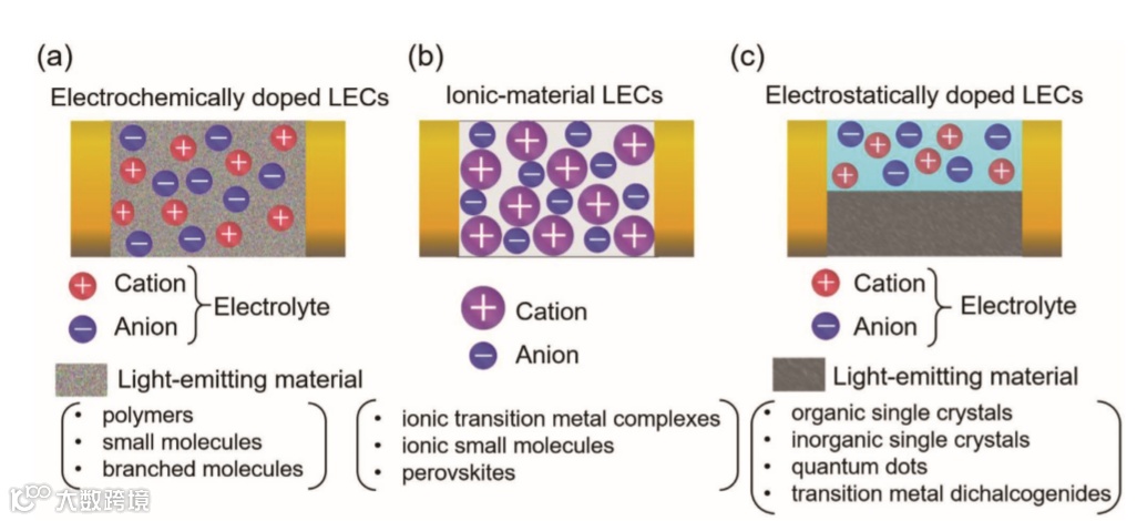 典型的共轭聚合物具有电化学稳定性。因此,原则上,通过选择合适的电解质,p型掺杂和n型掺杂都是可能的。因此,所提议的p-n结的原位形成是合理的,并且可能是未来照明设备的革命性方法。然而,对于原位电化学p型和n型掺杂,聚合物与阳离子和/或阴离子之间的相容性至关重要,并且当它们的相容性太低时,可能导致聚合物和电解质之间的相分离。此外,由于离子响应缓慢,LECs的开启时间通常很长,并且该响应时间还与离子导电性有关。因此,需要聚合物和电解质的良好组合,所以适用于LECs的聚合物材料大多限于PPV基聚合物。材料的变化是制约LECs实际应用的关键问题之一,而材料的变化对颜色变化和器件的改进至关重要。
