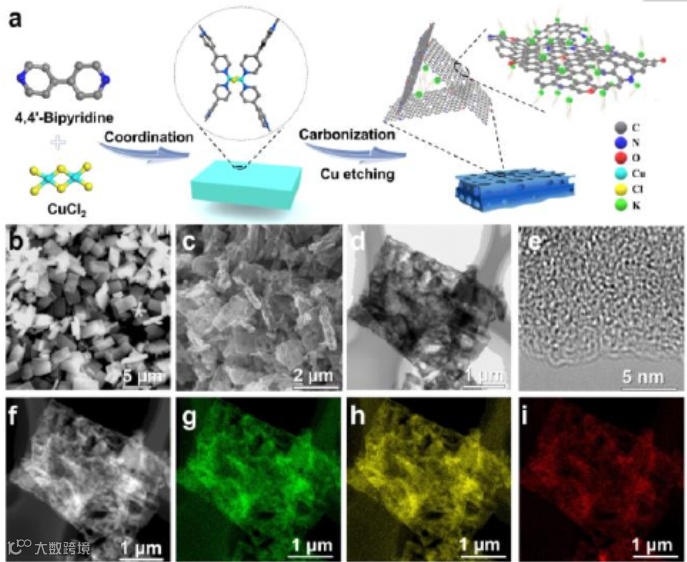 本文中作者提出了一种新的方法来制备边缘富含掺杂N的多孔碳纳米片(enpc)用于超稳定K离子储存。考虑到前驱体中含有一定的吡啶氮,所以采用吡啶配位聚合物网络的热解刻蚀方法制备了enpcs。通过将热解温度降低到500℃,作者得到了同时具有边部氮含量9.34at%、比表面积为616m2g-1、在空间上材料内部的N分布更丰富的ENPCS。ENPCS具有高可逆容量(313mah g-1)、高的倍率性能和超长的循环稳定性,在1A g-1的电流下超过6000循环后仍能保持252mAh g-1的容量,几乎没有衰减(衰减率为0.0009%)。高边型氮含量、内部空间丰富的氮分布和高比表表面积的共同作用,使其充分利用了表面吸附电容行为,表现出超高的稳定性能。这个工作推动了碳材料在K离子储能系统中的应用。
