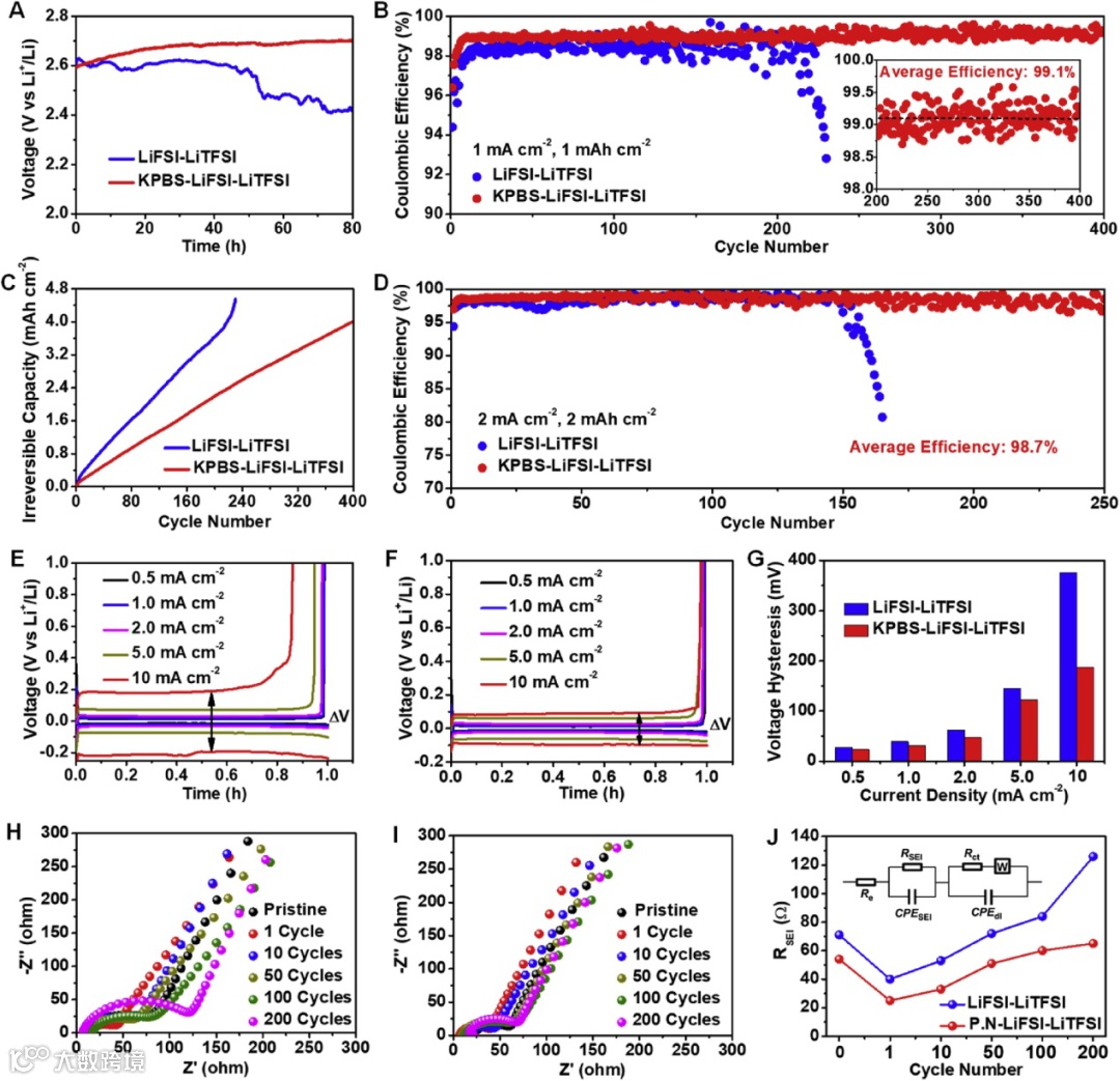 K+阳离子可以提供有效的静电屏蔽,从而防止形成锂金属“热点”,并且具有独特的最低未占据分子轨道(LUMO)含量的富F PBS-阴离子负责形成富LiF的SEI 层。 -