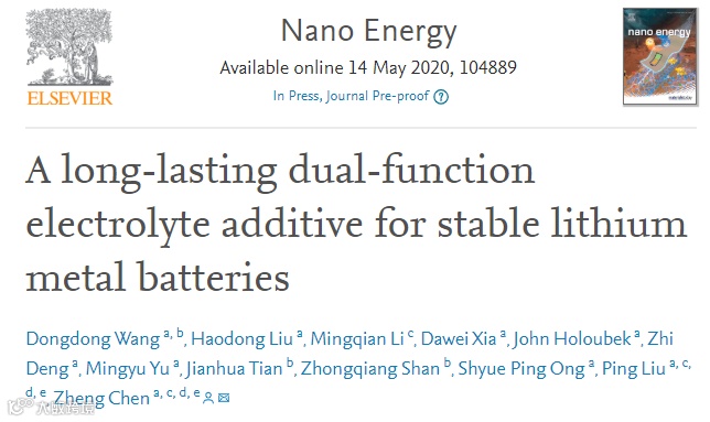 电解质添加剂对实际的锂金属电池应用显示出希望。