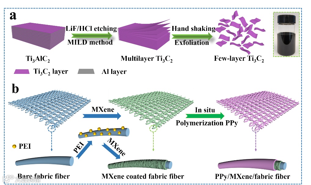 Interfacing MXene flakes on fiber fabric as an ultrafast electron transport layer for high performance textile electrodes