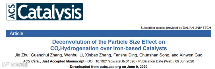 近日,大连理工大学郭新闻课题组对不同大小的负载型碳化铁纳米颗粒的二氧化碳加氢性能差异进行了深入研究,在催化领域国际顶级期刊ACS Catalysis上发表题为“Deconvolution of the Particle Size Effect on CO2 Hydrogenation over Iron-based Catalysts”的研究工作。该文章第一作者为大连理工大学博士生朱杰,大连理工大学张光辉副教授、郭新闻教授和美国宾州州立大学宋春山教授为共同通讯作者。