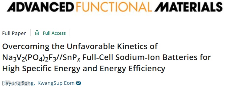 克服Na3V2(PO4)2F3//SnPx钠离子全电池的不利动力学,实现高的比能量和能量效率