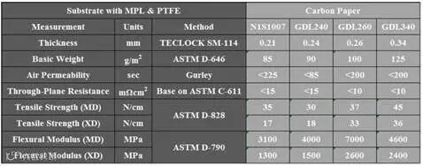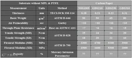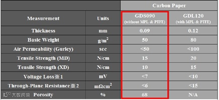碳能N0S及GDS系列碳纸参数表