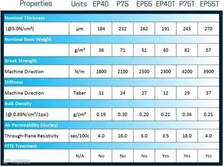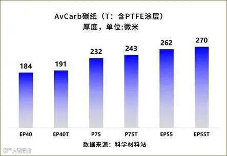 AvCarb碳纤维纸有EP40,P75,EP55三种型号的基底,而EP40T,P75T和EP55T是对这三种碳纤维纸经过PTFE疏水处理后得到的,AvCarb同样对碳纸经行原厂的疏水处理,其PTFE含量一般在5-35wt%。需要注意的是AvCarb该系列碳纸均没有微孔层!这里就不过多介绍其其它系列型号碳纸,如感兴趣可私信我们的官方微信咨询Z博士哦。