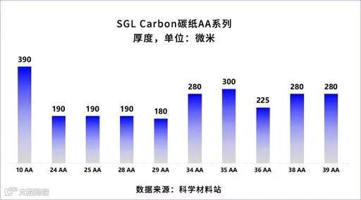 根据可查数据,我们总结了部分生碳纸(raw carbon paper)的型号与厚度图表,然而并没有看出SGL Carbon的分类依据是什么,太深奥了~~~