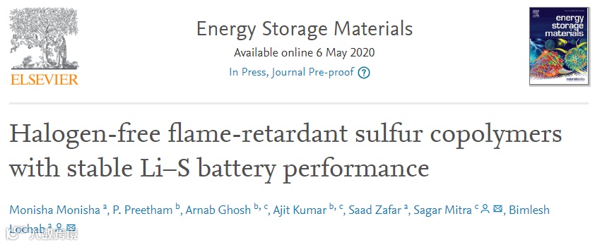 最近,将阻燃剂(FR)添加剂/电解质作为一种有潜力的方法,主要是为了提高锂硫电池的安全性。通常,由于其与电池的一些成分不相容,外部FR助剂的物理混合可能会降低电池性能。此外,卤素添加剂是不可取的,因为它们对环境和人类健康构成重大威胁。