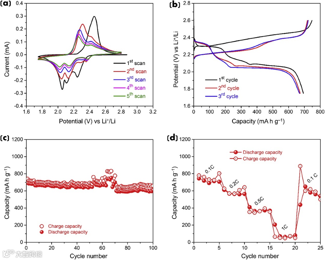 (d) rate performance at different current rates.