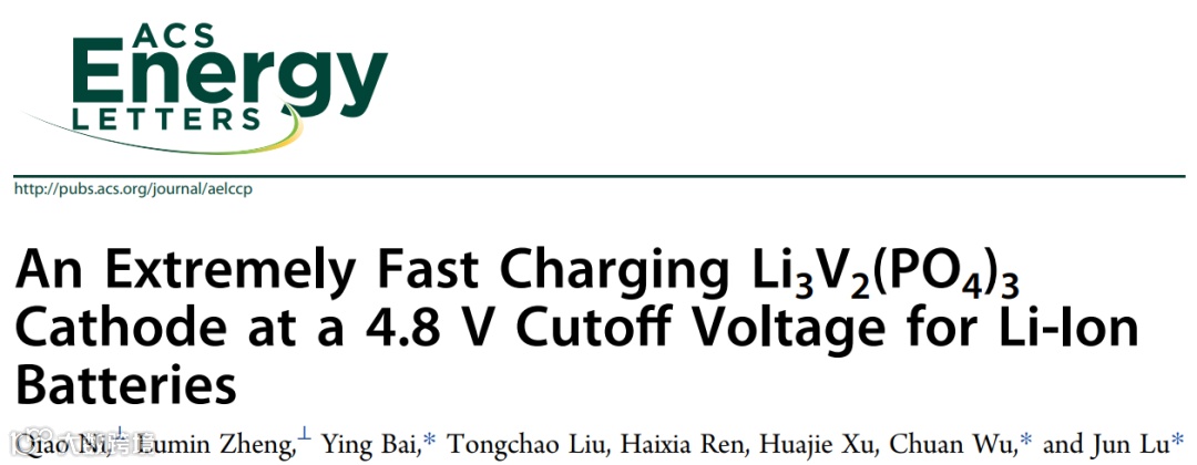 Li3V2(PO4)3 正极实现锂离子电池在4.8 V截止电压下的极快速充电