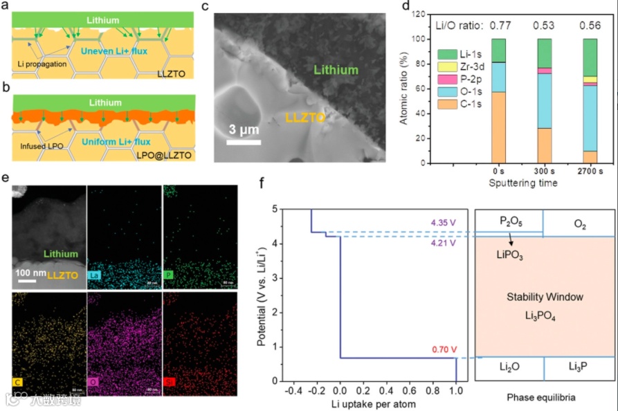 图六: 坚固耐用的锂离子导电Li / LPO @ LLZTO接口的界面化学插图。