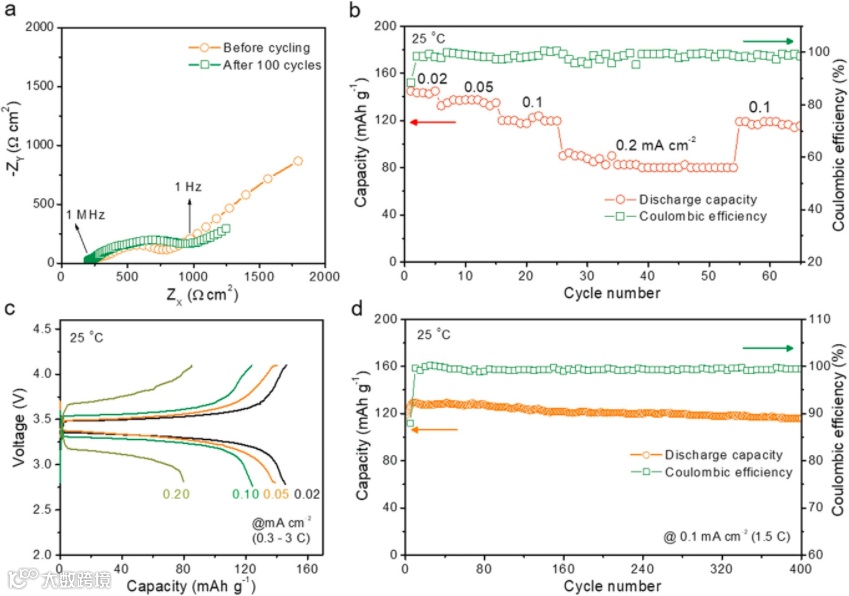 图四: 制备的LLZTO沉淀在25°C下的电化学表征。