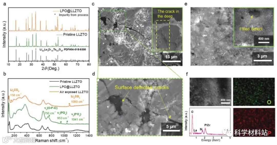 图三: LPO @ LLZTO石榴石电解质的表征。