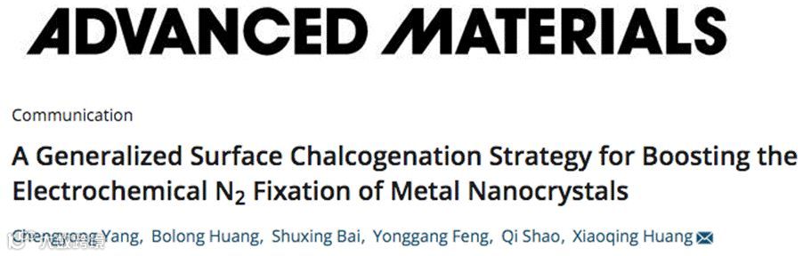 为此, 苏州大学&厦门大学黄小青教授课题组近日在国际知名期刊Advanced Materials上发表了题为“A Generalized Surface Chalcogenation Strategy for Boosting the Electrochemical N2 Fixation of Metal Nanocrystals”的研究文章, Chenyong Yang是本文的第一作者。