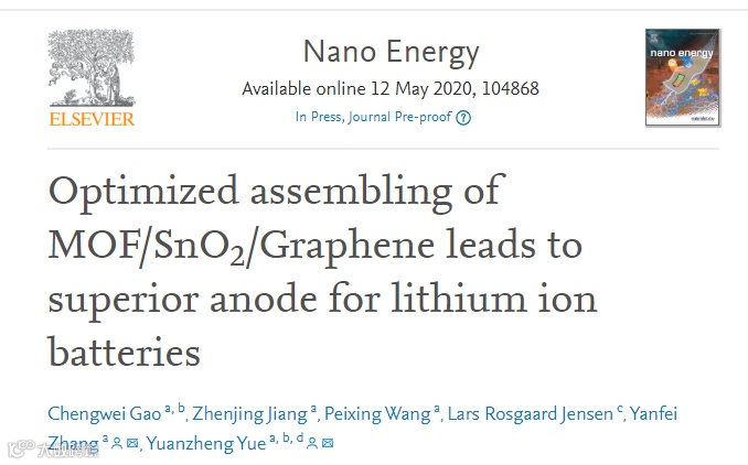 基于以上现状,岳远征、张艳飞等在国际知名期刊Nano Energy 上发表题为“Optimized assembling of MOF/SnO2/Graphene leads to superior anode for lithium ion batteries”的论文。高成伟为本文第一作者。