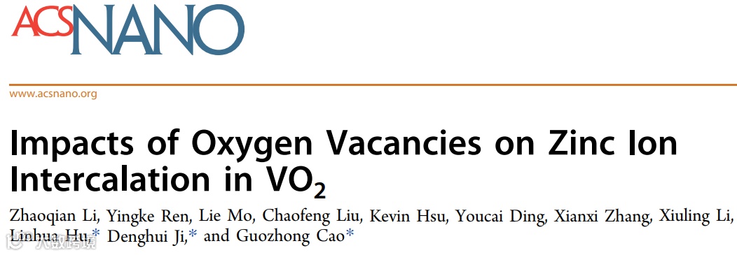 基于以上现状,中科院胡林华研究员,华盛顿大学曹国忠教授,石家庄学院纪登辉博士等在国际知名期刊ACS NANO上发表题为“Impacts of Oxygen Vacancies on Zinc Ion Intercalation in VO2”的论文。李兆乾博士为本文第一作者。
