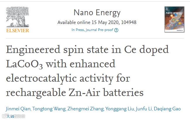 Ce掺杂LaCoO3的自旋态设计提升可再充Zn-Air电池电催化活性