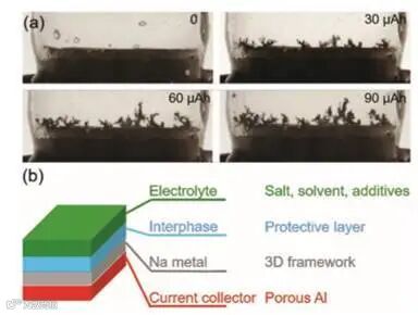 a) Formation of filament-like sodium dendrite, reproduced with permission.