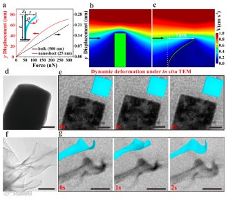 (g) In situ TEM was used to observe the dynamic deformation of the nanosheets at the edge of the NAF film in the fluid. The TEM images show the transformable property of the MOF nanosheets, thatis, the outside edge of the nanosheets constantly twisting its shape to accommodate fluid changes (from 0 to 1 and 2 s). Scale bars represent 500 nm for (d,e), 500 nm for (f), and 400 nm for (g).