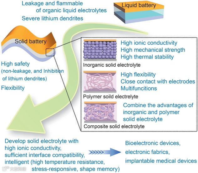近几十年来,人们对一系列以固体电解质为基础的储能装置进行了广泛的探索,并期望在不久的将来能极大地改善我们的生活。例如,轻质、安全、灵活的储能装置可以直接佩戴在人体上,生物相容性储能装置可以植入组织或器官中,为体内医疗器械持续提供能量。