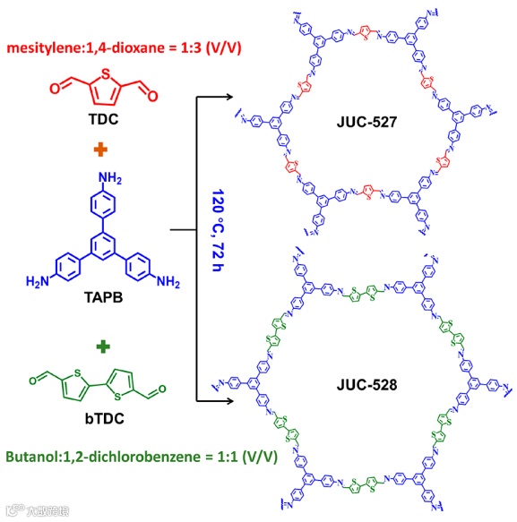 图1. JUC-527 and JUC-528的合成与结构示意图