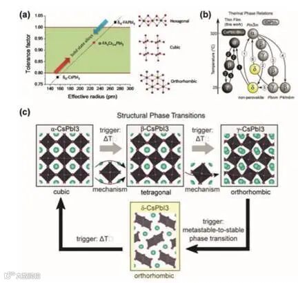 b) thermal phase relations of CsPbI3,