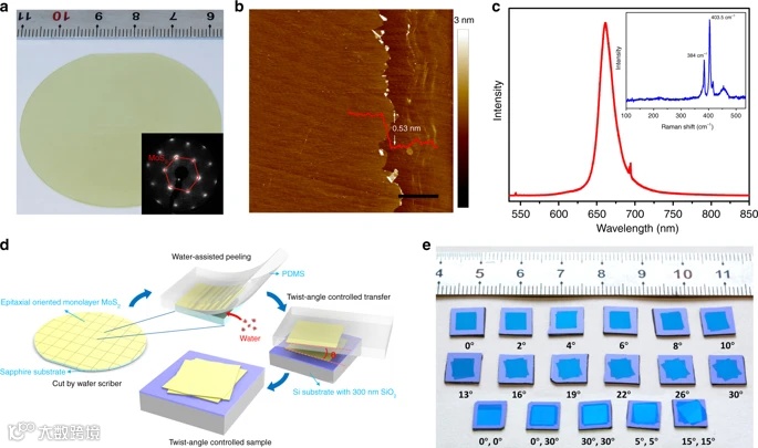 图2:高质量扭曲双层MoS2薄膜
