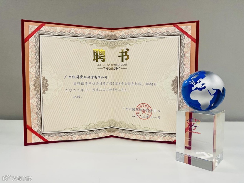 本次会议举行了“投资广州”专家库聘请仪式,我司广州凯得资本运营有限公司(下称“凯得资本”)荣幸被广州市国际投资促进中心聘为“投资广州专家库专业服务机构”,广州市国际投资促进中心主任吴毅为我司颁发“2023-2024年投资广州专家库专业服务机构”聘书及奖杯。