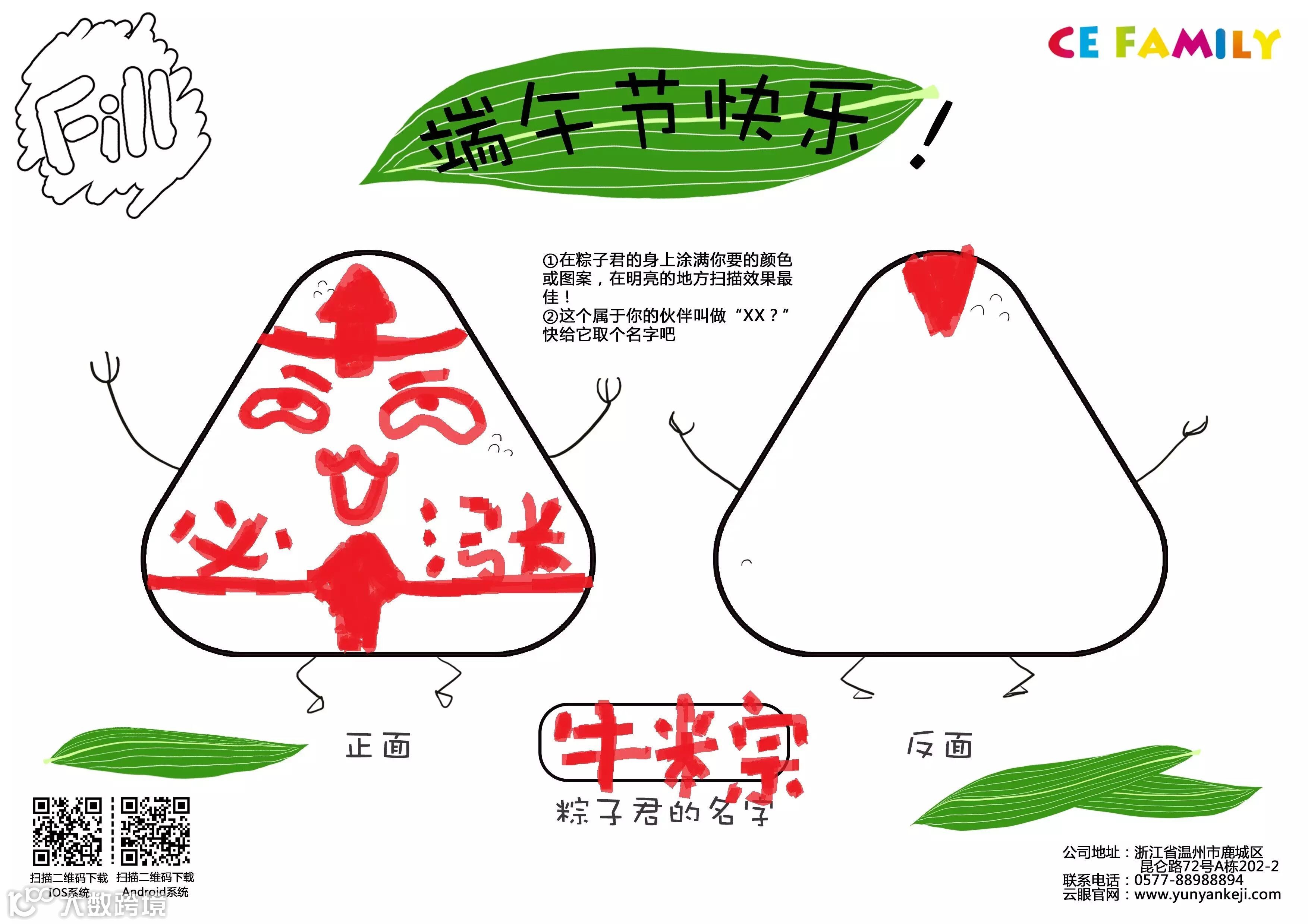 这里提供一个参考图案,你只需要画你想要的粽子(可写祝福哦)