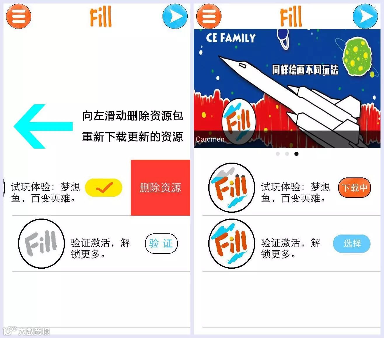 如果之前体验过Fill,试玩的资源包必须要删除后重新下载!