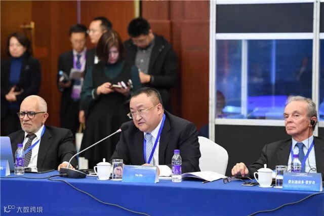 东中西部区域发展和改革研究院院长于今(中)在“中共十九大:中国发展和世界意义”国际智库研讨会的平行会议上发言(11月16日摄)。新华社记者陈晔华摄