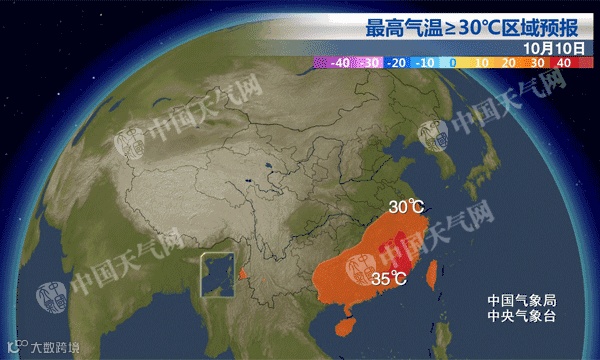 南方10日仍会是炎热当道,最高气温多维持在30℃以上,江南、华南局地还将有高温现身,与北方的阴冷形成强烈的反差。