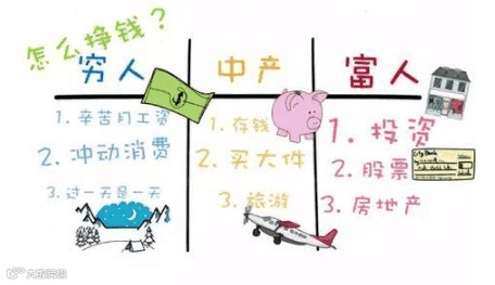 为什么穷人越穷、富人越富?每个人都有职务性收入,但每个人的资产、负债、现金流却各不相同。你是穷人、中产还是富人?下面我们来一起看一张图,通俗易懂的介绍了三者的区别: