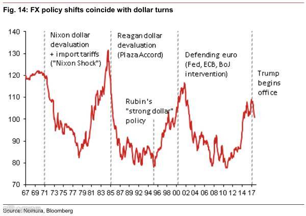 美国总统特朗普是支持弱势美元的。他曾经多次抨击“美元太过强势,损害了美国出口”。因此,Bilal Hafeez在研报中称,根据过往经验来看,美元指数可能在未来几年都保持低迷态势。做多美元不是当下应当选择的策略。