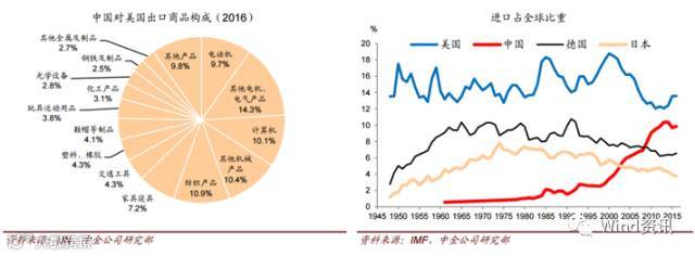 中国在贸易谈判中有较大回旋余地。历史上日本进口占全球份额始终没有超过德国。而中国目前已是全球第二大进口国,2016 年进口占全球 9.9%(美国 13.6%),因此在贸易谈判中拥有更大的主动权。