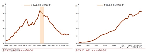 参考日本经验,如果中美之间贸易摩擦升级,可能导致中国占美国进口比重每年下降1个百分点。按照2016年中国占美国进口份额21%计算,1个百分点的份额下降意味着美国从中国进口(或中国对美国出口)减少5个百分点。