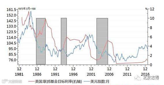 短期看,美联储货币政策的确会影响美元汇率的预期,但长周期内就显得不那么重要了。如在1986-1988年加息周期、1993-1994年加息周期、2006年加息周期中,美元指数均呈现持续回落的态势(参见下图)。同样,当前美联储仍处于加息周期中,但今年以来美元指数却持续回落。