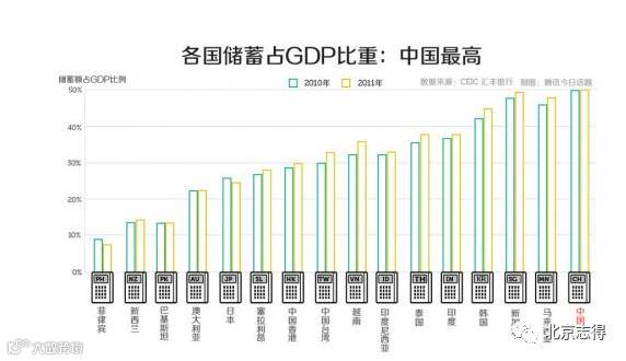 根据国际货币基金组织、世界银行和美国中央情报局2015年度《世界概况》显示,中国收入储蓄水平排名世界第三,仅次于中东石油出口国卡塔尔和科威特。