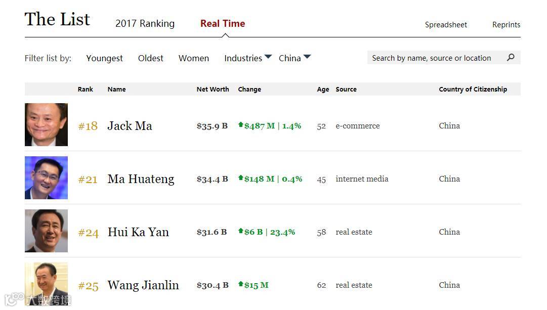图:福布斯中国富豪排行榜