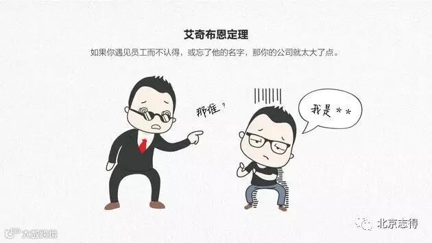 八、艾奇布恩定理:如果你遇见员工而不认得,或忘了他的名字,那你的公司就太大了点。