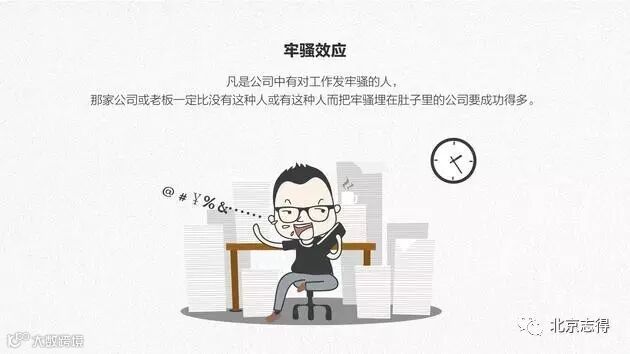 四、牢骚效应:凡是公司中有对工作发牢骚的人,那家公司或老板一定比没有这种人或有这种人而把牢骚埋在肚子里公司要成功得多。