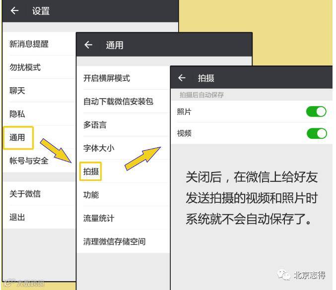 安卓手机点击“我”—“设置”—“通用”—“拍摄”—最后分别将“照片”和“视频”选项关闭即可
