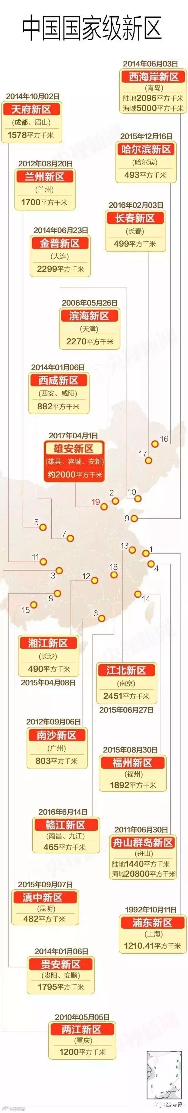 目前,如果算上河北雄安新区,国家级新区总数为19个。