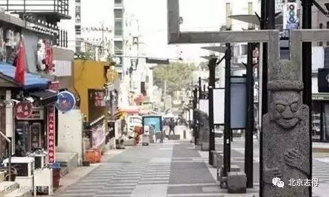 △这是一度中国游客人头攒动的济州街道—— 15日上午,济州市连洞“宝健街”空无一人。